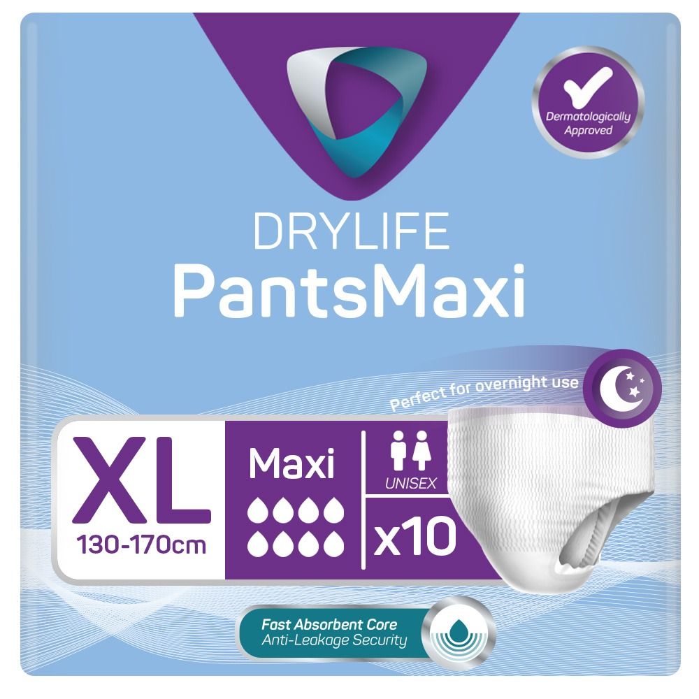 With a high level of absorption, soft elasticated sides, and a comfortable waistband, Drylife Pants Maxi are the ideal choice to keep you safe and secure.